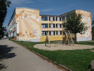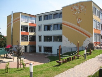 Die Gestaltung des Schulhofes und des Spielplatzes im „Moosmutzelreich“ bildeten den Abschluss der Arbeiten. Ein besonderer „Hingucker“ wurden die Fassaden am Schul- und Kindergartenteil.