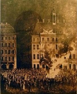 Die ersten Ausbrüche hatten sich bei dem Concert im großen Garten geäußert, wo mehrere junge Leute von den Musikern den Marseiller Marsch verlangt und dann mit Gesang und Freiheitsgeschrei nach der Stadt gezogen waren. Neugierige und Unzufriedene, hauptsächlich aber brotlose Müßiggänger, hatten den Auflauf vermehrt, der sich nach dem Rathause und dem Polizeigebäude wälzte, wovon letzteres zerstört und aus ersterem ein Teil der Akten auf dem Markte verbrannt wurden.