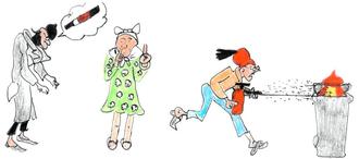 „Gisbert, komm schnell, unsere Mülltonne brennt!“, ruft Agnes. „Hast du etwa schon wieder deine Tabakspfeife entleert?“