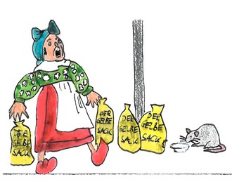 Als ich nach diesem Festmahl die Beine ausgestreckt hatte und eben die Zeitung aufblättern wollte, machte es sich Agnes auch bequem und plauderte drauflos: „Du Gisbert, es ist immer so schön, hier mit dir zusammen zu sitzen. Das ist viel unterhaltsamer als mit Nachbars Kater, der mir seit neuestem keine Gesellschaft mehr leistet.“ Ach, auf eine Unterhaltung läuft das hinaus ... Da säuselte Agnes auch schon: „Hab ich doch letztens die gelben Säcke bereitlegen wollen, da sprang mir eine wohlgenährte Ratte vor die Füße. Als ich mich vom ersten Schreck erholt hatte, entging mir nicht, dass ich versehentlich einen halbvollen Becher Tsatsiki vom Grillabend im Sack entsorgt haben musste. Ich dachte noch, dass ich den doch vorher in der Toilette entleeren wollte. Das muss ich glatt nach diesem feuchtfröhlichen Abend vergessen haben.“
