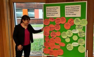Um die Fachkompetenz des Umweltbundesamtes zu nutzen, arbeitet die Fachschaft Geographie des Philanthropinums mit entsprechenden Experten in Dessau zusammen. So referierte Alice Schröder (Fachgebietsleiterin im Bereich nachhaltige Raumentwicklung) am 12. November vor den beiden Geographiekursen über nachhaltige Stadtentwicklung und konnte den Schülern dabei Einblicke in die Aufgaben des UBA und von Stadtplanern geben. Die Schüler wurden mit einer Kartenabfrage aktiviert, um das Thema Nachhaltigkeit für die Stadt Dessau zu erschließen. Stichworte wie emissionsarme Mobilität, Stadtgrün und Lebensqualität für alle Generationen umreißen die Problematik und zeigen deren Relevanz. Da sich die Schüler selbst mit kleinen Projekten der Stadtplanung beschäftigt hatten, konnte das Verständnis für die komplexen Prozesse im Konfliktfeld zwischen Ökonomie, Ökologie und Sozialem erfasst werden.