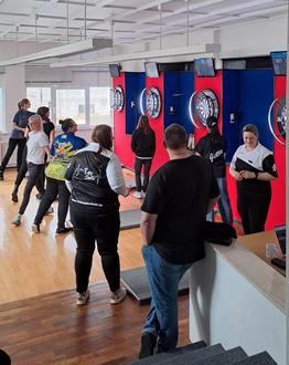 „Game On“ beim gemeinsamen Dartspielen in den Räumen von Ally Pally Rolleben