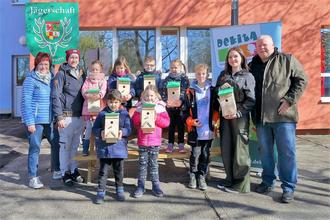 Einen Überraschungsbesuch gab es am 5. April in der Kindertagesstätte „Fuchs und Elster“ in Roßlau. Michael Mitsching, Vorstand und Vertreter der Jägerschaft Dessau e.V., überbrachte 16 Nistkästen für einheimische Vögel, wie etwa Kohlmeise, Gartenrotschwanz oder Feld- und Haussperling.