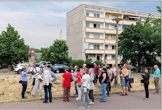 Am 8. Juni gab es eine weitere öffentliche Werkstatt, diesmal zum Richard-Paulick-Ring. Zunächst ging die Gruppe mit ca. 30 interessierten Bürgerinnen und Bürgern auf einen Erkundungsspaziergang. Dieser führte von der Hauptstraße durch die dunkle Passage neben der Tagespflege „Roßlauer Hof“, über den Richard-Paulick-Ring zur Nordstraße, zur Waldstraße und zurück über den Richard-Paulick-Ring und die Fuge zur Hauptstraße. In der Ludwig-Lipmann-Bibliothek fand eine abschließende Diskussion zum Wohngebiet statt. Zunächst einige Fakten: Das Wohngebiet entstand in den 1980er/1990er Jahren, es liegt nah am Roßlauer Zentrum und hat mit Kindertagesstätte, Grundschule, Supermarkt und Ärztehaus eine gute Grundausstattung. Ende 2021 lebten hier ca. 1.012 Menschen, das ist jeder zehnte Bewohner vom Stadtteil Roßlau. Etwa zwei von fünf Bewohnern sind im Seniorenalter, die durchschnittliche Haushaltsgröße beträgt 1,3 Einwohner pro Wohnung und ist damit sehr niedrig. Von den 940 Wohnungen stehen 20 % leer, oftmals die oberen Etagen. Das Wohngebiet ist zusammen mit seinen Bewohnern älter geworden und könnte an manchen Stellen eine Auffrischung vertragen, etwa wenn es um die Freiraumgestaltung oder Wegeführung im Gebiet geht. Diskutiert wurden die Verkehrsführung Einbahnstraßenregelung am Richard-Paulick-Ring) und die Vermeidung von Schleichverkehr von der Nordstraße zur Waldstraße. Die Aufwertung der Skateanlage an der Waldstraße, die geplante Sanierung der Kita „Fuchs und Elster“ und der Neubau einer Wohnanlage an der Fuge werden neue Impulse setzen. Einig waren sich alle Teilnehmenden, dass die eingangs angesprochene dunkle Passage und die unklare Wegeführung am ehemaligen Hotel „Roßlauer Hof“ dringend verändert werden müssten.