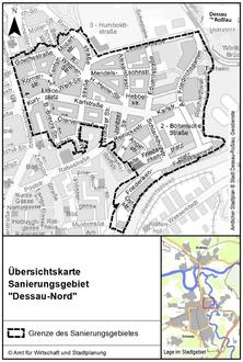 Die Stadt Dessau-Roßlau beabsichtigt, die städtebaulichen Sanierungsmaßnahme im Sanierungsgebiet “Dessau-Nord“ im 4. Quartal 2024 zum Abschluss zu bringen und somit die Sanierungssatzung aufzuheben. Die Schlussabrechnung gegenüber dem Fördermittelgeber ist erfolgt.