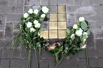 Neben den bereits verlegten Stolpersteinen für die Familie Steinbock erinnern nun auch Stolpersteine an Wolf, Jenny, Arnold, Marianne und Bernhard Goldmann.