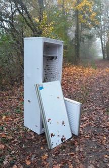 Nach einiger Zeit der Suche dokumentieren Adler mit seiner Kollegin vor Ort den ärgerlichen Fund: ein Elektroaltgerät, unsachgemäß und schwer erreichbar abgestellt im Unterholz. Solche Geräte enthalten Kühlmittel, die die Umwelt schädigen können, wenn sie nicht fachgerecht entsorgt werden. Und noch dazu ist die Entsorgung für den Endverbraucher kostenlos. Da stellt sich wieder die Frage: Warum fährt man dieses sperrige und schwere Gerät mit viel Aufwand in den Wald? Also für die Flora und Fauna ist das nicht nur unnütz, sondern schädlich.