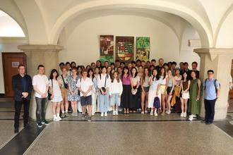 Chinesische Schüler besuchen das Rathaus der Stadt.