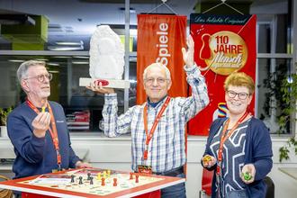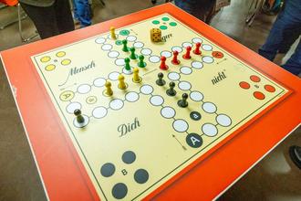 Peter Rentzsch (68) gewinnt am 13.01.2024 die Deutsche Meisterschaft im "Mensch ärgere dich nicht" in der Marie-Curie Schule.