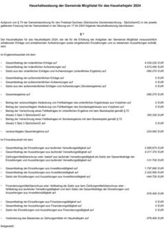 Die öffentliche Auslegung der Haushaltssatzung 2024 mit dem Haushaltsplan erfolgt in der Zeit von