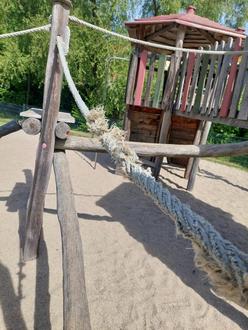 Seit dem 15.05.2025 ist der öffentliche Spielplatz aus Sicherheitsgründen komplett gesperrt. Die Halteseile, welchen Kindern das sichere Begehen der Kletterburg ermöglichen, wurden an mehreren Stellen eingeschnitten. Ein Austausch wird schnellstmöglich erfolgen.