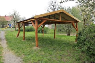 Fotos: Stadtverwaltung Eilenburg - Der Carport in Pressen – im Hintergrund der Spielplatz..