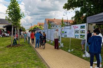 Ferner wurden die Ergebnisse der Leitbildentwicklung in Form von Tafeln entlang des Weges vorgestellt, bei der die Einwohner auch noch vor Ort mit Anregungen und Ideen mitwirken konnten. Dies sorgte bei zahlreichen Besuchern für einen spannenden Austausch und Beteiligung. So hatte jeder Einwohner die Möglichkeit, mit den Verantwortlichen vor Ort ins Gespräch zu kommen und seine Interessen mit einem Klebepunkt an der passenden thematischen Stelle kundzumachen. Zudem ist zur Städtebauförderung in Eilenburg informiert worden.