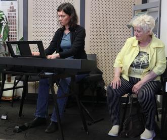 Fotos: Stadtverwaltung Eilenburg – Lena Ruddies (l.) am Piano und die Spenderin Monika Neumann-Wächtler (r.).