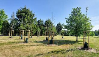 Ein Teil der neu gepflanzten Bäume auf dem Friedhof Mansberg.