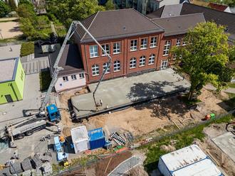 Im Rahmen der Städtebauförderung wird ein Bürgertreff als Anbau an die Sebastian-Kneipp-Grundschule realisiert. In dem kleinen Anbau werden zwei Mehrzweckräume, ein Lagerraum, eine Teeküche und ein Sanitärbereich untergebracht.