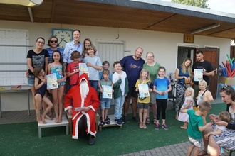 Vor den Steaks, Salaten und Würstchen konnte sich Jung und Alt in verschiedenen lustigen Spielen an Land und dem beliebten Bootziehen in Kinder und Familienstaffeln ausprobieren. Natürlich war Baden und Spielen im Wasser bei den Kiddies der absolute Höhepunkt. Zur Siegerehrung erschien unser diesjähriger Überraschungsgast – der Weihnachtsmann! Er hatte Geschenke und die Urkunden mitgebracht.
