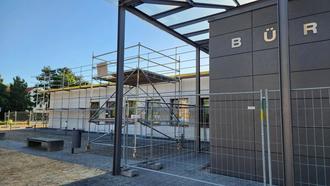 Das Dach des Bürgerhauses muss zwingend energetisch saniert werden, da es undicht ist und eine geringe energetische Qualität aufweist. Hier ist ein kompletter Austausch der Dachabdichtung und Dämmung erforderlich, um künftig Energie einsparen zu können und den CO2-Ausstoß zu senken. Zudem wird Süd- und Ostfassade des Saal-Baukörpers saniert, da diese durch Witterungseinflüsse stark angegriffen sind. Die Maßnahme wird vom Büro Giersdorff Architekten aus Eilenburg betreut.