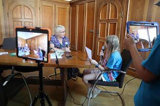 Im Rahmen der Kinderstadt 2024 gestalteten Eilenburger Kinder zum 8. Mal ihre eigene Stadt. In der ersten Sommerferienwoche übernahmen die Kinder das Kommando in ihrer Stadt auf dem Gelände des Jugendfreizeitreffs JuST. Sie stellten Regeln auf und setzten ihre selbst geplante Projekte um. Sie entschieden gemeinsam, welchen Namen die Stadt tragen soll und gestalten beispielsweise ein Wappen. Gemeinsam wählten sie demokratisch eine Bürgermeisterin. Am Donnerstag, den 28.08.2024 besuchte die Bürgermeisterin der Kinderstadt mit ihrem Medienteam Steffi Schober im Rathaus. Die stellvertretende Bürgermeisterin beantwortete die Fragen der Kinder zu den Aufgaben des Bürgermeisters einer Stadt.