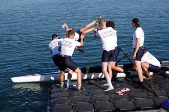 Foto: Ruderclub - Traditionelles Ritual des siegreichen Achters nach dem letzten Rennen am Sonntag.