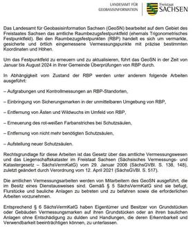 Ankündigung von Arbeiten am amtlichen Raumbezugsfestpunktfeld des Freistaat Sachsen