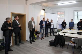 Zur Eröffnung des Coworking-Space in der Rollenstraße 23 waren am 7. November 2023 der Oberbürgermeister Ralf Scheler, Vertreter des Tourismus- und Gewerbevereins Eilenburg e.V., der Universität Leipzig, des Landratsamtes Nordsachsen, aus dem Eilenburger Wirtschaftssektor sowie weitere Unterstützer des Projektes vor Ort. Die Anwesenden hatten die Möglichkeit den Coworking-Space zu besichtigen und sich darüber zu informieren.