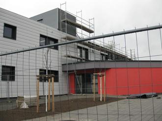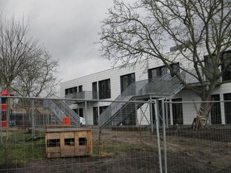 Die Außenanlagen sind weitestgehend hergestellt. Die Zaunanlage mit Haupteingangstor sowie die bodendeckenden Pflanzen/Stauden können lieferungs- und witterungsbedingt erst zu einem späteren Zeitpunkt fertig gestellt werden. Bis dahin sorgen Bauzaunabsperrungen für einen sicheren Zugang ins Objekt.