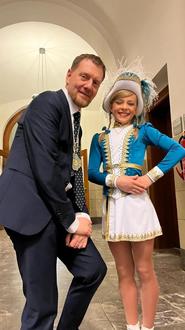 Am 31.01.2025 lud Herr Ministerpräsident Kretschmer zum jährlichen Empfang der Karnevalisten in die Staatskanzlei Dresden. Finia Jakubowski, Tanzmariechen in der Altersklasse Jugend unseres Eilenburger Carneval Club e.V., durfte als amtierende sächsische Meisterin am diesjährigen Empfang teilnehmen und ihren Tanz als Teil eines bunten Programms der besten Karnevalisten aus ganz Sachsen zeigen. Anschließend nahm sich der Ministerpräsident noch Zeit für ein gemeinsames Foto mit Finia. Begleitet wurde Finia von ihrer Trainerin Jasmin, amtierende sächsische Vizemeisterin im Mariechentanz ihrer Altersklasse.