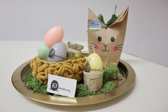 Die Osteredition enthält natürlich wieder nur Produkte von lokalen Anbietern. Darin enthalten wird ein extra angefertigter Eierbecher der AWO sein. Zudem wird es eine Kerze mit einem österlichen Eilenburg-Motiv geben. Weiterhin wird es zwei Eilenburger Ostermotive auf Wasserschiebefolie geben, um sich seinen Osterschmuck selbst gestalten zu können. Ein Glas Honig rundet die Osterüberraschung ab.