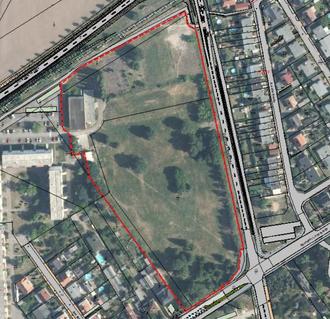 Copyright Stadtverwaltung Eilenburg, Staatsbetrieb Geobasisinformation und Vermessung Sachsen (GeoSN) Die rote Markierung umrahmt die veräußerte Fläche.