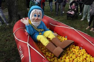 Neues Fest - neues Glück - am Sonntag, dem 19. März 2023 wagte die Stadt Eilenburg den ersten Versuch eines kleinen neuen Events rund um das Wettrennen der Gummienten auf dem Mühlgraben. Leider schafften es die 1000 Enten auf Grund der zu hohen Fließgeschwindigkeit des Mühlgrabens aus Sicherheitsgründen nicht auf das Wasser, dafür jedoch in ein großes Schlauchboot des Technischen Hilfswerkes. Aus diesem wurden dann die 10 Gewinnerenten durch das Stadtmaskottchen Heinz Elmann und den Oberbürgermeister Ralf Scheler herausgefischt.