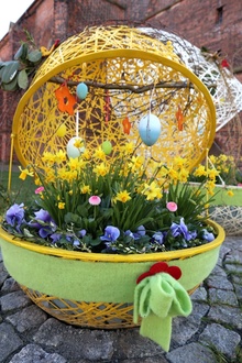 Im Eilenburger Stadtgebiet hat Mitte März der Frühling Einzug gehalten. Die Beete in der Wallstraße, die Blumenuhr und die Ostereier vor der Nikolaikirche wurden mit bunten Frühblühern bepflanzt. So haben Hornveilchen, Tausendschönchen und Stiefmütterchen ihren Platz in den Beeten erhalten. Auch die Tonkrüge an den Straßenrändern wurden mitunter österlich dekoriert. Zudem sind die Dreiecke auf dem Marktplatz mit Stiefmütterchen und Spindelsträuchern bepflanzt worden. Auch die Blumenbänder im gesamten Stadtgebiet fangen an zu blühen.