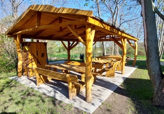 Seit der Fertigstellung des Spielplatzes hat sich auf dem Gelände rundherum einiges getan, denn der Tobeplatz ist nur als ein Teil eines innovativen Treffpunktes in Zschettgau entstanden. Dieser Treffpunkt bietet Angebote für verschiedene Zielgruppen. Seit dem letzten Jahr gibt es dort einen überdachten Sitzplatz, eine Tauschbox, neue Beleuchtung sowie eine Fahrradabstellanlage. Vor kurzem wurde noch eine Solarbank aufgestellt, welche einige Highlights bietet. So befinden sich im inneren der Bank eine Luftpumpe, Werkzeug, eine 220-Volt-Steckdose, um zum Beispiel e-Bikes zu laden und verschiedene Ladestandards für e-Scooter.