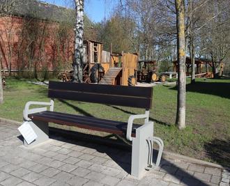 Die moderne Solarbank befindet sich vor dem Spielplatz.