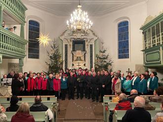 Unter Paul Reichelt-Ritters Leitung sorgte der Männerchor "Einigkeit" mit der Instrumentalgruppe und seiner Liedauswahl für Klangvolumen im Raum. Mit dem Lied "Von guten Mächten wunderbar geborgen", brachten sie uns alle bewegende Wünsche zum Klingen. Dieser Dietrich-Bonhoeffer-Text ist tiefsinnig und ermutigend zugleich. Der "Singkreis Lausitz" trat als gemischter Chor unter Karin Schadocks Leitung mit Vielfalt auf. Von der weltlichen Weihnachtsweise "Giebel glänzen tief verschneit", aus dem 20. Jahrhundert ging's weiter zu Willibald Gluck's "Hoch tut euch auf, ihr Tore der Welt", des 18. Jahrhunderts. Der Volkschor Massen und der gemischte Chor Crinitz sangen ihre Liedauswahl einzeln und gemeinsam. Starke Altstimmen und helle Soprane gaben ihr Bestes. Roland Reichelt dirigierte beide Chöre mit erfahrener Hand stellvertretend für den erkrankten Chorleiter.