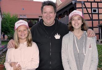 Sebastian Krumbiegel vor dem Prinzen-Konzert 2017 in Herzberg mit zwei Herzberger Fans.