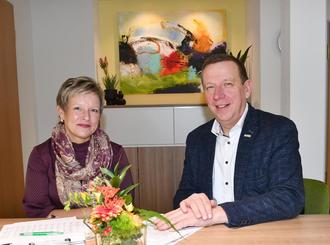 Die Geschäftsführerin der Seniorenzentrum „Albert Schweitzer“ gGmbH, Janin Schmidt, und Christian Jaschinski blicken gemeinsam auf eine erfolgreiche Bilanz des Landkreisunternehmens zurück.
