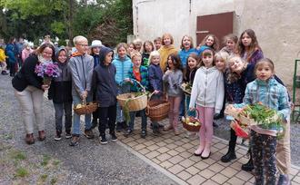 Ihre Dankbarkeit für die Gaben der Natur brachten die SchülerInnen beim Erntedank Gottesdienst am 5. Oktober in der Großthiemiger Kirche zum Ausdruck. Der Altar wurde herbstlich schön geschmückt und mitgebrachte Früchte, Obst, Gemüse, Brot und Blumen dekorativ dargeboten. Religionslehrerin Silvie Grosser und Gemeindepädagogin Kathleen Gude gestalteten gemeinsam mit den Kindern ein zauberhaftes Programm mit Liedern, Gebeten und Wünschen für eine gute Ernte überall auf der Welt. In der Darbietung einer Kurzgeschichte über „Den Wert des Brotes“ vermittelten die Schüler eindrucksvoll, welchen Einfluss der Wohlstand auf unsere Achtung der einfachen Gaben der Natur hat. Zum Abschluss des Gottesdienstes teilten sich alle als Zeichen ihrer Dankbarkeit und der Wertschätzung ihrer Gemeinschaft Brot und Wein(-trauben).