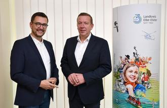 Der neue Geschäftsführer des Jobcenters Elbe-Elster, Andreas Groth, mit Landrat Christian Jaschinski.
