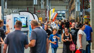 Blick in die gut gefüllte Produktionshalle der REISS Büromöbel GmbH, die in diesem Jahr als Gastgeber der Ausbildungsmesse MATCH fungierte.