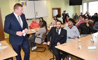 Im persönlichen Gespräch erkundigte sich Landrat Christian Jaschinski nach den Lebenswegen, Erfahrungen und Perspektiven der frisch Eingebürgerten.
