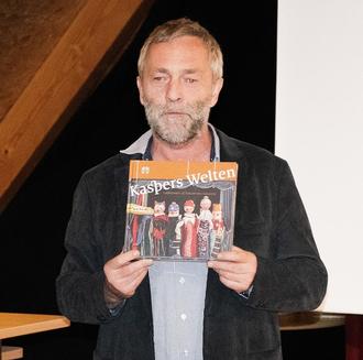 Ralf Uschner vom Mitteldeutsches Marionettentheatermuseum stellte den Gästen das Buch „Kaspers Welten. Das Kasperspiel als immaterielles Kulturerbe“ vor.