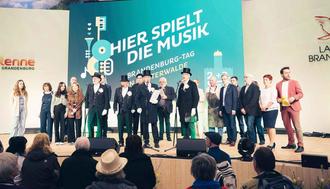 Elbe-Elster 2024 auf der Bühne in der Brandenburghalle: U.a. mit den Finsterwalder Sängern warb die Gastgeberstadt Finsterwalde für den Brandenburg-Tag im Landkreis EE.