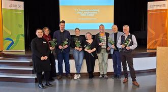 Die Leiterin des Kulturamtes Steffi Marschner gemeinsam mit den Referentinnen und Referenten des 31. Kreisheimatkundetages: Prof. Mechthild Noll-Minor, Dr. Sebastian Rick, Mirjam Höse, Babette Weber, Ralf Uschner, Frithjof Koerdt und Ulf Lehmann (v. l. n. r.).