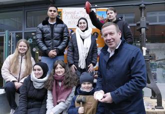 Das junge Medaillen-Projektteam freute sich über den Besuch des Landrates Christian Jaschinski zum Tag der offenen Tür am Melanchthon-Gymnasium.