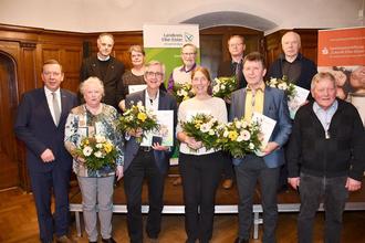 Die Kulturpreisträger 2023 v.l.n.r.: Landrat Christian Jaschinski, Anita Engelmann, Pfarrer Manfred Grosser, Regina Thomas, Sebastian Schiller, Peter Rose, Catrin Große, Werner Bruntsch, Andreas Claus, Manfred Hennig und Karl Trepsdorf.
