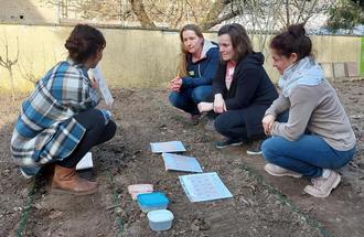 Damit alle Beteiligten gut vorbereitet in die Pflanzsaison starten können, fand am Nachmittag des 20. März der erste Pflanzworkshop statt. Im bereits umgegrabenen Schulgarten erwartete Ackercoach Pauline die Acker Buddys der Schule und erläuterte die Grundlagen des Ackerns. Angefangen beim richtigen Umgraben und Unterbringen des Mulches, über das richtige Anlegen von Beeten und Wegen bis hin zu den unterschiedlichen Pflanztechniken. Denn je besser und gründlicher bei der Vorbereitung gearbeitet wird, umso größer fällt die Ernte aus. Mit Acker Skizze und Anbauplan konnten die ersten Handgriffe umgesetzt werden. Die letzten Beete stecken die Schüler selbst ab und sind schon jetzt voller Vorfreude auf das Festhüpfen der Wege und Einräumen ihrer Ackerwerkzeuge im eigens angeschafften Geräteschuppen.