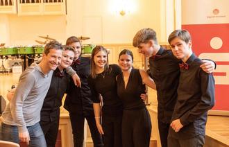 von links: Dipl. Mus. Päd. Lars Weber Marlon Weber, Jonas Kloditz, Charlotte Frieda Kugler, Elisabeth Paula Kugler, Karl Arthur Friedrich, Noah Poller