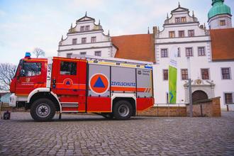 Das neue Löschgruppenfahrzeug vor dem Schloss in Doberlug.
