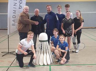 Die Möglichkeit des Beiwohnens bei den aktuell besten Badmintonspielern im Training zeigte bei ihm großes Entzücken. Erstaunt über das hohe Alter und die Rüstigkeit lauschte der Nachwuchs dem ehemaligen Bürgermeister bei seinen Schilderungen zum Erhalt der Sporthalle nach der „Wende“ sowie seinen Erinnerungen an den Badmintonsport in seiner Amtszeit.